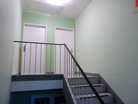 Gepflegte Wohnung mit Einbauküche auf zwei Etagen. Ideal für junge Menschen, die Ihre erste eigene Wohnung beziehen möchten. Aufteilung: kleiner Flur, Küche, kleines Bad mit Dusche, kleines Wohnzimmer mit Zugang zum Balkon und ein Schlafzimmer im Dachgeschoß. Zu der Wohnung gehört ein Carport.