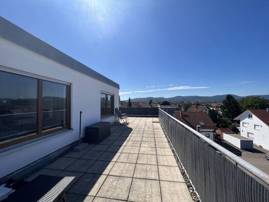 Diese 3,5-Zimmer-Wohnung im Dachgeschoss eines Zweifamilienhauses bietet Ihnen 2 Schlafzimmern und ein großes Wohn-Esszimmer mit direktem Zugang zum überdachten Balkon. Auch von den beiden Schlafzimm...