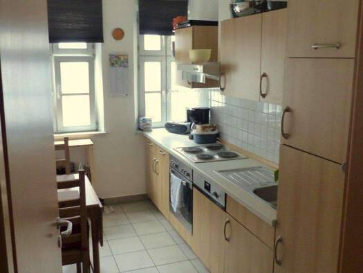 Eine Einbauküche ist vorhanden Günstiger Mieterstrom durch hauseigene PV—Anlage Keine Fotos der Wohnung beigefügt, da noch vermietet. Es ist jedoch eine schöne Wohnung mit Loggia auf Südseite