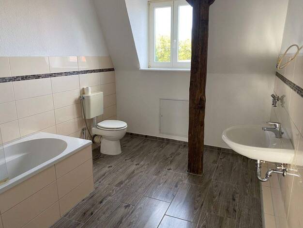Hier handelt es sich um eine große 3-Raum Wohnung im 1.OG. Die Räume sind mit hochwertigen Vinyl-Boden ausgestattet. Das Badzimmer verfügt über eine ebenerdige Dusche und Fenster. Die Wohnung wurde b...