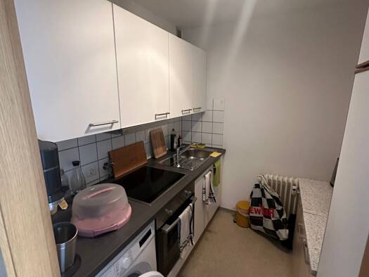 In ruhiger, beliebter Wohnlage bieten wir diese hübsche 3,5 Zimmerwohnung an. Sie befindet sich in einem gepflegten Mehrfamilienhaus mit 2x6 Wohneinheiten mit Hausmeisterservice, welcher in den Nebenkosten enthalten ist. Der großzügige, helle Wohn/Essbereich ist zur Küche hin geöffnet. Vom Wohnbereich aus hat man Zugang zum sonnigen Balkon. Zwei Schlafzimmer, ein Bad mit Dusche und Wanne schließen sich dem Wohnraum an. In der Wohnung ist zusätzlich ein Abstellraum vorhanden. Im UG stehen eine K...