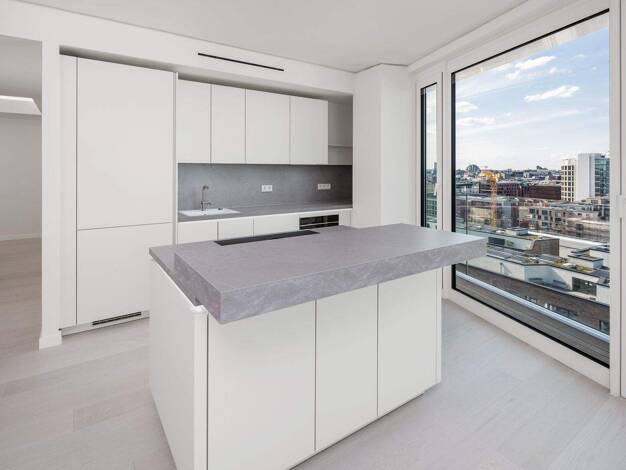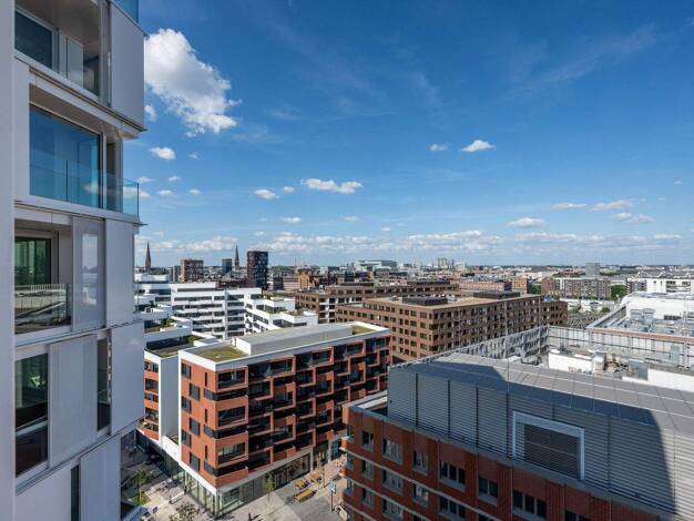 Diese 2-Zimmer-Wohnung im 13. Stock überzeugt durch modernes Design, hohen Wohnkomfort und einem unvergesslichen Blick über die Hamburger Skyline. Der großzügige Wohn- und Essbereich mit offener Küche besticht durch bodentiefe Fenster, die viel Tageslicht hereinlassen. Das separate Schlafzimmer bietet einen ruhigen Ort zum Entspannen und ausreichend Platz für persönliche Gestaltungsideen. Hochwertiges Parkett und ausgesuchte Materialien verleihen den Räumen eine warme und stilvolle Atmosphäre. ...