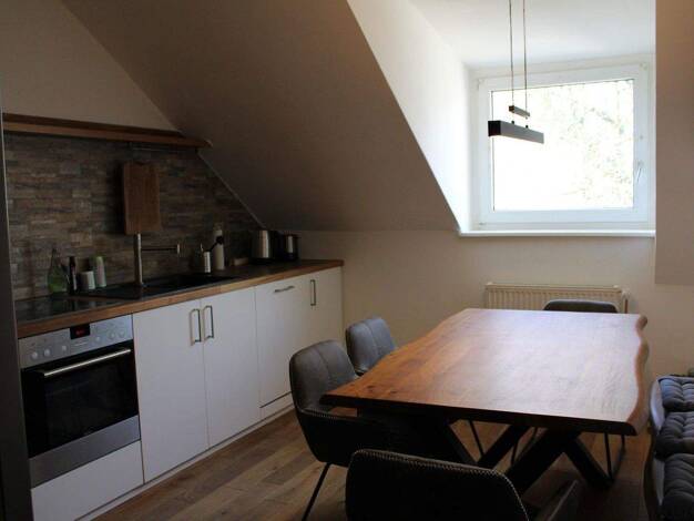 Zur Vermietung steht eine hochwertig ausgestattete Dachgeschosswohnung in einem gepflegten historischen Denkmalobjekt. Die Wohnung überzeugt durch 3 stilvoll und modern eingerichtete Schlafzimmer. Der großzügige Wohnbereich bildet das Zentrum der Wohnung. Dieser ist gestaltet im Loft Charakter mit Kamin. Die Wohnung eignet sich optimal für Familien oder als WG für Studenten/Pendler.