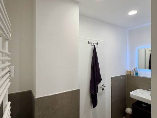 Diese stilvoll modernisierte Wohnung (ca. 80 m²) liegt in einem Anbau eines Mehrfamilienhauses von 1961 und ist ideal für Singles, Paare oder Pendler. Der helle Wohn- und Essbereich mit hochwertigen ...