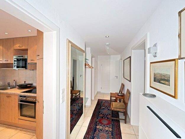 Sonnige 3,5-Zimmer-Wohnung mit 2 Balkonen, Garagenstellplatz und Keller. Die Wohnung liegt im 2. OG eines sehr gepflegten Mehrfamilienhauses. Im Wohn- und Esszimmer befinden sich eine Sitzecke, ein Tisch für 4 Personen und ein Smart-TV mit Streamingfunktion. Internetverbindung ist vorhanden unk inklusive in Gesamtmiete. Die Einbauküche ist voll ausgestattet mit einem Kühlschrank mit Gefrierfach, Spülmaschine, einem 4-Platten-Induktionsherd, einem Multifunktionsbackofen und sämtlichem Kücheninve...