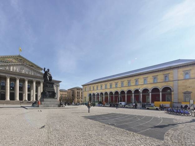 RENDEVOUS VON HISTORIE UND GEGENWART Der Hofarchitekt König Ludwig I. plante nicht nur den Königsbau der Residenz und des National-theaters direkt gegenüber. Er gestaltete auch die Fassade des heutig...