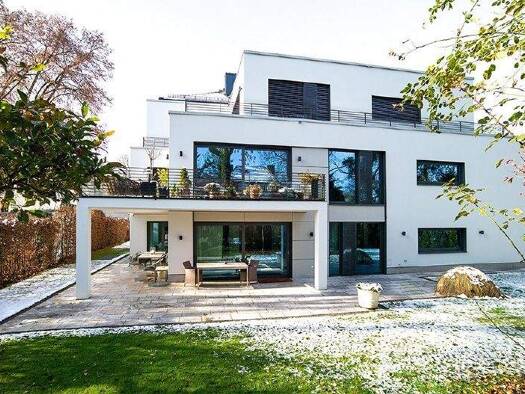 In dem zu den begehrtesten Wohnvierteln Münchens zählenden Stadtteil Nymphenburg, unweit des Nymphenburger Kanals, befindet sich diese architektonisch anspruchsvolle Stadtvilla, welche im Jahr 2011 erbaut wurde. Zur Vermietung steht die Gartenwohnung im gesamten Erdgeschoß mit einer Wohnfläche von etwa 302 m². Die hochwertige Ausstattung wird auch höchsten Ansprüchen gerecht: Hochwertige Einbauküche, moderner offener Kamin, schreinergefertigte Einbauschränke, Böden aus Eiche thermobehandelt, Ar...