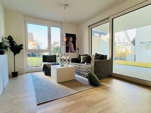 Neubau, Erstvermietung ab März 2026. Moderne, teilmöblierte 2-Zimmer-Wohnung am Rand des Naturschutzgebiets. Hochwertige Ausstattung mit Bambus.Parkett, Fliesen, Smart Home Licht Spots und Tageslicht Bad mit ebenerdiger Dusche. Schlafzimmer mit Pax-Schrank und Abstellkammer. Bett hat 140 cm Breite. Offener Wohn-/Essbrereich mit Couch, TV und ausgestatteter Küche inkl. neuer Geräte. Aussenstellplatz direkt vor der Wohnung. Super Infrastrukutr mit Bus, Supermarkt und Gewerbegebiet in der Nähe. Nä...