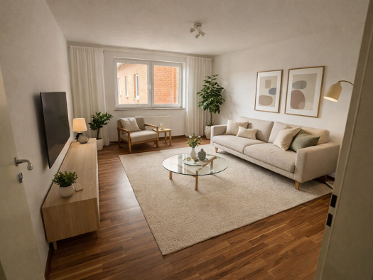 Diese attraktive 2-Zimmer-Wohnung überzeugt mit einem durchdachten Grundriss und einem modernen Wohngefühl. Das großzügige Wohnzimmer bildet das Herzstück der Wohnung und bietet viel Platz für einen gemütlichen Wohn- und Essbereich. Ein kleiner Balkon lädt dazu ein, frische Luft zu genießen. Die moderne Küche ist zeitgemäß ausgestattet und bietet ideale Voraussetzungen für komfortables Kochen. Dank der praktischen Raumaufteilung eignet sich die Wohnung perfekt für Singles oder Paare, die eine s...