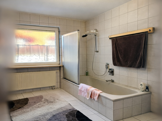 Im 4. OG befindet sich ein schönes renoviertes Bad mit Eckbadewanne, ein Gäste-WC, die Küche, inkl. neuer Einbauküche, sowie ein großes Wohn-Esszimmer. Hier könnte auch mit wenig Aufwand ein weiteres Schlafzimmer eingebaut werden. Im 5. OG befindet sich ein großes Schlafzimmer welches auch Platz für ein Büro bietet sowie ein weiteres WC damit man nicht ständig die Treppen gehen muss. Die Wohnung wurde 2015 umfangreich renoviert und befindet sich in einem neuwertigen Zustand. Das große Wohnesszi...
