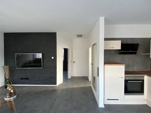 Bei dem Objekt handelt es sich um eine 2-Zimmer Neubauwohnung mit Einbauküche und Carport mitten in der City von KL, in absolut ruhiger, sonniger Lage. Aufteilung: Wohn-/Essbereich mit integrierter K...