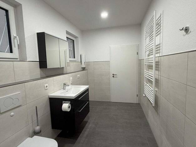 Tolle 2 bis 4-Zimmer Wohnungen in Energieeffizientem KFW55 Haus, Fußbodenheizung, zentrale Luft-Wärmepumpe, kontrollierte Wohnraumlüftung durch dezentrale in den Wohnungen installierte, moderne Einbauküchen in Hochglanz weiß, ebenerdige Duschen, moderne Betonfliesenoptik in Format 30x60cm, 3-fach Fensterverglasung der Firma WERU (innen und außen weiß), elektrische Rolladensysteme, elektrische Bad-/Handtuchheizkörper, WCs mit Softclose System, Waschmaschinen- und Trockneranschlüsse in Masterbad,...