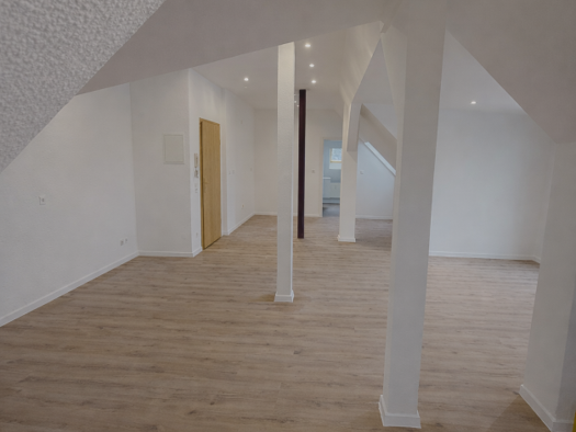 Zur Vermietung steht eine hochwertig ausgebaute Dachgeschosswohnung in der Stephanstraße 7 in Dresden-Pieschen. Erstbezug nach umfangreicher Sanierung des Dachgeschosses. Die Wohnung verfügt über ca. 66 m² Nutzfläche. Aufgrund der Dachschrägen ergibt sich eine Wohnfläche von ca. 55 m² inkl. Balkon. Das Raumkonzept ist konsequent offen: Wohn-, Ess-, Koch- und Schlafbereich gehen fließend ineinander über. Trennwände gibt es nicht, lediglich das Badezimmer ist separat geschlossen. Der Charakter is...