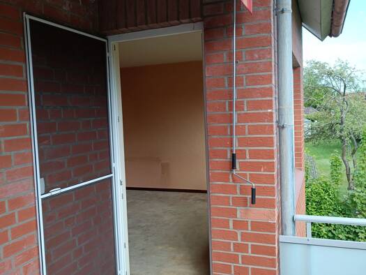 Das Haus ist in massivbauweise erstellt und mit rotem Klinker versehen. Die Fenster sind weiße Kunststofffenster mit Isolierverglasung, helle Einbauküche mit Anschluss für einen Geschirrspüler, Vollbad mit Badewanne und Dusche und Anschluss für eine Waschmaschine, großer Südbalkon, Laminat im Wohnschlafbereich, Keller, Glasfaseranschlüss über Wilhelm Tel., bequeme Fußbodenheizung