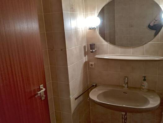 Die schöne , großzügige und helle Dachgeschosswohnung liegt im 1. OG eines Zweifamilienhauses in einer ruhigen Nebenstraße. Im Erdgeschoss des Hauses befindet sich eine weitere kleinere Mietwohnung, welche bereits vermietet ist. Ein ebenfalls im Erdgeschoss befindlicher ehemaliger Schwimmbadbereich wird von dem Vermieter lediglich als Lagerfläche genutzt. Zusammen mit der Wohnung wird ein großzügiger Raum im Keller zum Abstellen und Lagern von Gegenständen vermietet. Der Kellerraum verfügt soga...