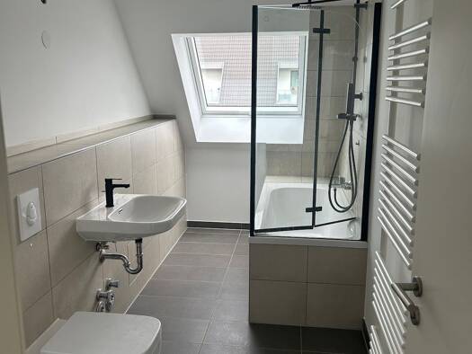 Bei dieser Immobilie handelt es sich um eine DG-Wohnung (ohne Dachschräge), die durch eine gehobene Innenausstattung besticht und zum 01.04.2026 bezogen werden kann. Das Objekt verfügt über 3 Zimmer, die alle über lan-Verkabelung verfügen. Die entsprechende Etage lässt sich bequem über einen Fahrstuhl erreichen. Die Wohnung ist barrierefrei. Besonders hervorzuheben ist die Dachterrasse, auf der es sich wunderbar vom Alltag erholen lässt. Des Weiteren gehört ein Keller, Fahrradkeller - in dem au...