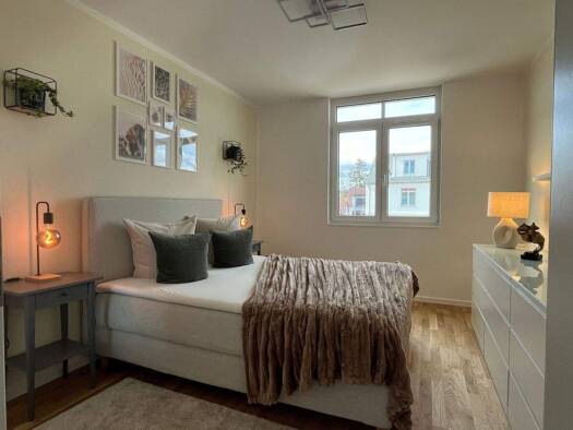 Diese stilvolle Erdgeschosswohnung befindet sich in einem modernen Wohngebäude und bietet eine Wohnfläche von ca. 48,22m². Die Wohnung umfasst 2 Zimmer, darunter ein Schlafzimmer, und ein modernes Badezimmer. Sie ist im Erdgeschoss gelegen und verfügt über einen offenen Wohn- und Essbereich, der perfekt für geselliges Beisammensein ist. Bitte beachten Sie, dass in der Warmmiete die Möblierungsmiete bereits inbegriffen ist (=Gesamtmiete).