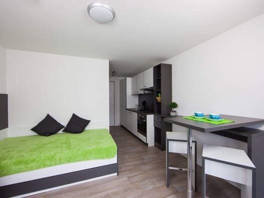 Das MAISON GMÜND ist eine moderne Apartmentanlage mit verschiedenen Apartmenttypen sowie großzügigen Gemeinschaftsflächen im Stadtzentrum von Schwäbisch Gmünd. 55 x Komfort-Apartments (ca. 20-23 m²) 63 x Komfort L-Apartments (ca. 24-37 m²) 1 x Komfort XL-Apartments (ca. 61 m²) Unsere pauschalen Nebenkosten beinhalten: Wasser, Warmwasser, Heizung, Strom, Community Manager, Facility Manager, Winterdienst, Reinigung der Gemeinschaftsflächen, Müll, Highspeed Internet bis zu 50 MBit/s, TV-Anschluss ...