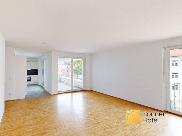 Die hier angebotene 3-Zimmer-Wohnung ist Teil des Objektes Sonnen Höfe in Schwäbisch Gmünd. Direkt am Eingangsbereich gelangt man zu den zwei geräumigen Schlafzimmern und in das moderne Badezimmer mit Dusche und Badewanne. Das separate Gäste-WC befindet sich auf dem Weg zum Wohn- und Essbereich. Vom Küchenbereich aus kommt man auf die Loggia. In den insgesamt fünf Gebäuden entstehen 73 Wohnungen, 22 Gästeapartments und fünf Gewerbeeinheiten. Einladend wirken die warmen Farben der Fassaden, die ...