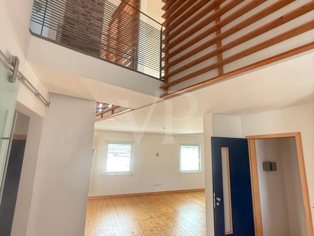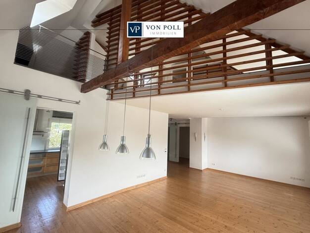 Das stylische Apartment mit außergewöhnlichem Grundriss besticht durch das offene Wohnraumkonzept. Viel Licht, Galerien, ein Brücke, große Fenster, hohe Decken sprechen Individualisten an. Die Holzböden schaffen Behaglichkeit. Die Wohnung befindet sich als einzige Wohneinheit in einem Wohn- und Geschäftshaus. Abends und am Wochenende ist kein Geschäftsbetrieb. Die Highlights: * offener Grundriss über zwei Etagen * viel Licht, große Fenster * außergewöhnliche Architektur * teilmöbliert (Einbausc...