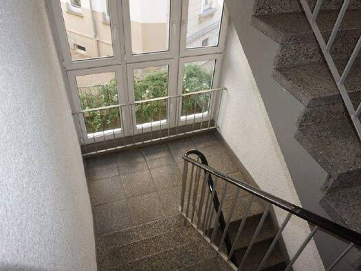Die Wohnung befindet sich in einem Mehrfamilienhaus in der Innenstadt von Gera.