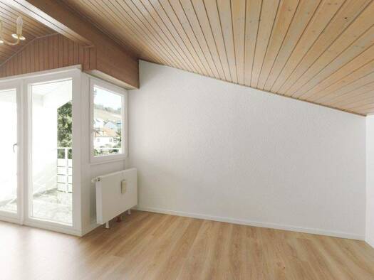 Loftartige 3,5 Zimmer Maisonette Wohnung mit Fernblick und großer Dachterrasse 3.Obergeschoss / Dachgeschoss mit massiver Innentreppe in Granit. Neue Einbauküche 2024. Lichtdurchfluteter Wohn- Essber...