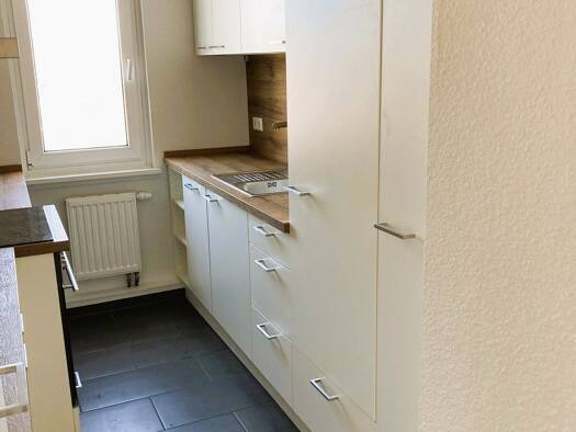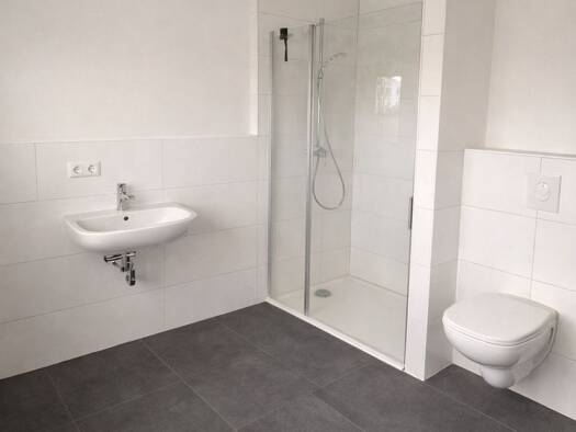 Raufaser weiß, Küche und Diele gefliest, restlichen Räume mit Laminat, Bad mit gefliester ebenerdiger Dusche innenliegend, kl. ASR an Küche barrierefreies Wohnen, Lift, Keller, Sitzecke, Trockenraum Mindestmietdauer 2 Jahre, Hundehaltung leider nicht erwünscht