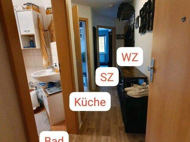 Die Wohnung befindet sich am südlichen Stadtrand von Eisenberg im EG eines 2-Familienhauses. Zur Einheit gehört ein separater Keller, ein kleiner Gartenbereich ca. 60 m² sowie ein Stellplatz vorm Haus. Hunde und Katzen sind nicht gestattet. Strom, Internet, GEZ sind nicht in den Nebenkosten enthalten.