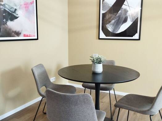 Objektbeschreibung Im Mai 2023 renoviertes Apartment, komplett ausgestattet mit hochwertigen Möbeln, moderner Küche mit allem Komfort bis hin zum Waschtrockner im Badezimmer. Einfach nur einziehen und wohlfühlen. In den Nebenkosten sind Heizung, Wasser, Strom und Internet bereits enthalten. Alle Küchenutensilien von Besteck, Geschirr, Gläser, Tassen, Wasserkocher usw. sind vorhanden. Ebenso wie Handtücher und Bettwäsche, Bügeleisen und -brett. Raumaufteilung Großer Schlaf-Wohn-Arbeits-Bereich m...