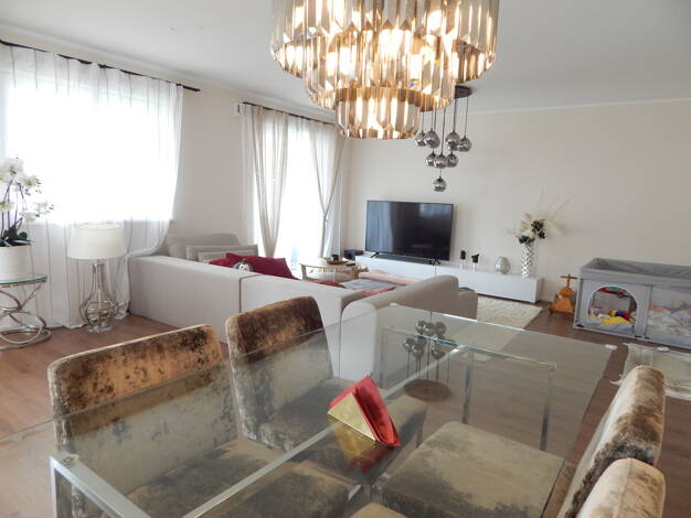 Das im Jahr 1972 errichtete Gebäude erstreckt sich über drei Etagen, wobei jede Etage eine eigene Wohnung beherbergt. Vor einigen Jahren wurde die Wohnung umfassend renoviert und präsentiert sich nun in neuem Glanz. Zu dieser Einheit gehört ein großzügiger Garten, der mit einem Pool ausgestattet ist. Der Pool wird gelegentlich auch von den anderen Bewohnern genutzt, und die Pflege dieses ansprechenden Freizeitbereichs wird gemeinschaftlich zwischen den Parteien organisiert.