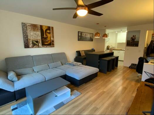 Unsere helle neu renovierte 3-Zimmer-Wohnung befindet sich im Erdgeschoss einer kleinen, gepflegten Wohnanlage mit insgesamt 12 Einheiten. Das großzügige Wohn- und Esszimmer bietet viel Licht und Zugang zur sonnigen Loggia mit Südausrichtung und Markise - ideal zum Entspannen. Neben zwei gut geschnittenen Schlafzimmern steht eine separate Küche zur Verfügung. Das komplett renovierte Badezimmer ist mit Duschwanne, Waschtisch und WC ausgestattet. Die Wohnung verfügt über weiße Kunststofffenster m...