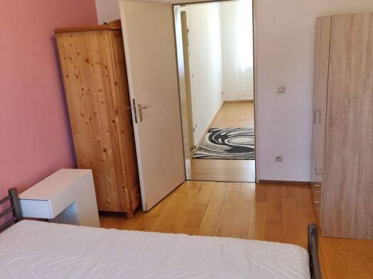 Das freundliche 2 Zimmer befindet sich im Erdgeschoss eines Mehrfamilienhauses in Zirndorf. Ein Bett und ein Kleiderschrank sind im Schlafzimmer vorhanden. In Wohnzimmer befindet sich eine Schlafsofa, ein Esstisch mit Stühle. Im Wohnräume ist Laminat verlegt. In der Küche befindet sich ein Kühlschrank und eine Küchenzeile mit Doppel Kochplatte und Backofen sowie Ober - Unterschränke. Das Tageslichtbad verfügt über eine Dusche. Eine Waschmaschine befindet sich ebenfalls in der Badezimmer. Die Ne...