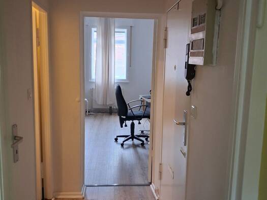 The apartment is excellent for a single person. It has a separate room, a diele, separate kitchen, Bathroom, store room and a keller. Parking place for a car is also available but that would be extra and not included in the rent. Cold rent is 950. Hausgeld , gas, water , electricity are to be paid by the tenant and are not included in the rent. Kitchen has a herd, a fridge and a washing machine. There is an almirah (cubboard), bed, bookshelf and some other furniture- which is included in the co...
