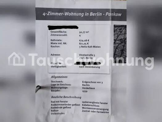 Es handelt es sich hierbei um ein Tauschangebot. (Anbieter-ID: 402567) Hey, ich biete meine gemütliche 3-Zimmer-Wohnung in Berlin-Pankow zum Tausch an. Sie ist 92 m² groß und kostet 900 € Kalt (1170€...