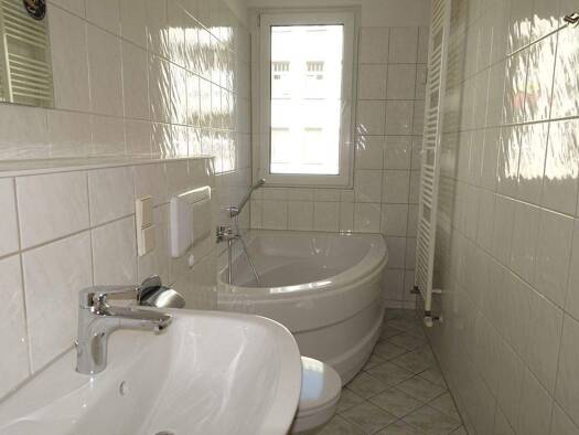Bad mit Fenster+ Wanne. Die grosszügige Küche bietet Platz für einen Esstisch mit Zugang zum Balkon. Hier findet auch die Waschmaschine ihren Platz. Alle Räume sind vom Flur aus begehbar und mit neue...
