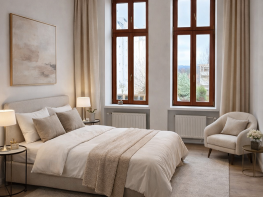 Diese stilvolle 2,5-Zimmer-Wohnung mit ca. 74 m² Wohnfläche befindet sich in einem denkmalgeschützten Gebäude in der Schwelmer Str. 13 in Wuppertal. Es handelt sich um einen Erstbezug nach umfassender Sanierung, bei dem der historische Charme des Hauses mit modernem Wohnkomfort harmonisch verbunden wurde. Die Wohnung überzeugt durch ihre großzügige Raumwirkung, hohe Decken und große Fensterflächen, die für ein helles und repräsentatives Wohnambiente sorgen. Die hochwertige Sanierung vereint mod...