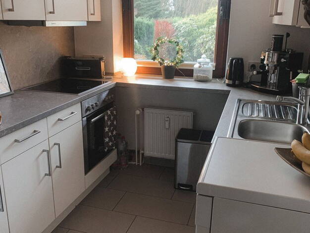 Diese neue, schicke Wohnung liegt im Erdgeschoss in einem Mehrfamilienhaus in Oststeinbek. Sie betreten zunächst den Flur. Links befindet sich das Schlafzimmer. Dies ist, wie auch das Wohnzimmer mit offener Küche, und auch der Abstellraum, mit einem hochwertigen Vinyl ausgelegt. Gleich hinter dem Schlafzimmer befindet sich das helle Badezimmer, welches in weiß und grau gestaltet ist. Bevor Sie in den hellen Wohnbereich mit bodentiefen Fenstern und einer offenen grauen Küche treten, befindet sic...
