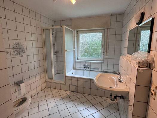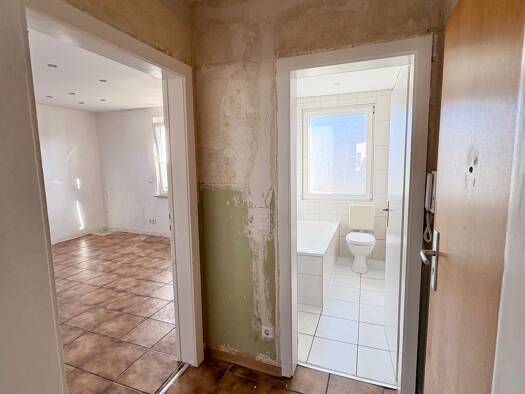 Wir haben für Sie renoviert! Es wurde ein modernes Bad mit Handtuchwärmerheizkörper eingebaut. Des Weiteren haben wir Wände und Decken mit Raufaser tapeziert und weiß gestrichen, die Heizkörper lacki...