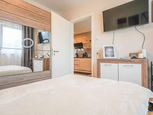Die Erdgeschosswohnung mit einer Wohnfläche von 47 m² befindet sich in einem zweistöckigen Gebäude, welches sich in einem erst kürzlich sanierten Zustand befindet. Die Immobilie verfügt über ein Schlafzimmer, ein Badezimmer und eine Terrasse. Die Wohnung liegt auf der Ebene 0 und wurde zuletzt im Jahr 2024 modernisiert. Die Räumlichkeiten der Wohnung bestehen aus insgesamt zwei Zimmern, einem gemütlichen Schlafzimmer, einem modernen Badezimmer und einem Wohnraum mit offener Küche. Von der Küche...