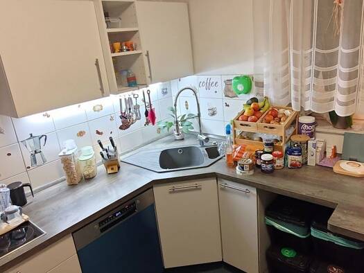 1-2 Personen mittleren Alters werden gesucht, die an einem langfristigen Mietverhältnis, in einem gepflegten, rauchfreien Wohnumfeld sowie an einer freundlichen Hausgemeinschaft interessiert sind. Die Küche ist gefliest, aber unmöbliert. Die Versorgungsinfrastruktur der Küche (Wasser-, Abwasser- und Stromanschlüsse) sind 2026 erneuert worden. Die Flure und das Gästezimmer sind mit Vinylböden, das Wohn-/Esszimmer sowie das Schlafzimmer sind mit Teppichböden ausgelegt. Im Badezimmer (2026 grundsa...