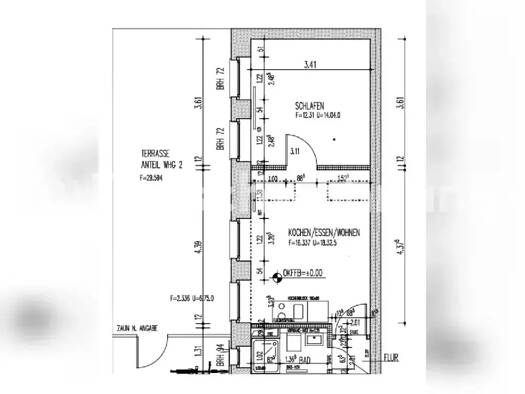 Die Wohnung liegt im Erdgeschoss (Hochparterre) und verfügt über Wohnzimmer mit Kochnische, Schlafzimmer und Bad. Die Treppenhäuser werden wöchentlich gereinigt und die Außenanlagen durch Hausmeister...