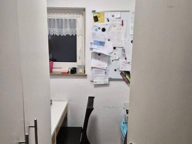 Der Raum selbst ist recht groß und hoch, wodurch er sehr geräumig wirkt. Der Raum verfügt über ein großes Fenster mit Blick auf die Straße, einen großen Heizgerät und einen großen leeren Kleiderschrank mit Regalen. Der Raum ist mit einer Lampe, einem Doppelbett, einem einfachen Schreibtisch, einem Stuhl, zwei kleinen Nachttischen und einem großen und einem kleinen Regal ausgestattet. Das Internetmodem ist ebenfalls hier angeschlossen. Das Zimmer liegt zwischen dem Hirschgarten und dem Schloss N...