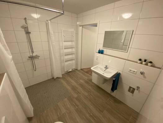 Diese hochwertige 2-Zimmer-Erdgeschosswohnung im Neubau überzeugt als Erstbezug in einem modernen KfW-40-QNG-Haus und bietet zeitgemäßen Wohnkomfort in ruhiger Lage auf einem rückliegenden Grundstück. Der offene Wohn- und Essbereich mit integrierter Einbauküche bildet das Herzstück der Wohnung und schafft eine einladende, helle Atmosphäre. Von hier aus gelangen Sie direkt auf die Terrasse mit Süd-Ost-Ausrichtung, die ideale Voraussetzungen für entspannte Stunden im Freien bietet. Das stilvolle ...