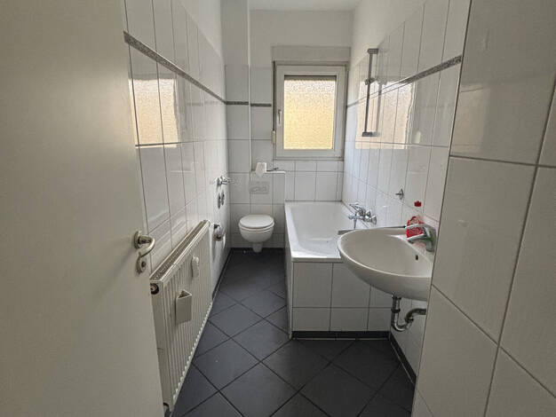 Bei der angebotenen Immobilie handelt es sich um eine renovierte 3-Zimmer-Wohnung gelegen im Erdgeschoss eines gepflegten Mehrfamilienhauses in Oberhausen Alsfeld. Wenn Sie die Immobilie betreten, stehen Sie zunächst einmal in der Diele, welche eine kleine Abstellkammer beherbergt, die für zusätzlichen Stauraum sorgt. Die Diele sowie die Küche und das Bad wurden mit neuen anthrazitfarbenen Fliesenboden versehen. Des Weiteren verfügt das Badezimmer über ein Fenster und wurde zudem mit einer Bade...