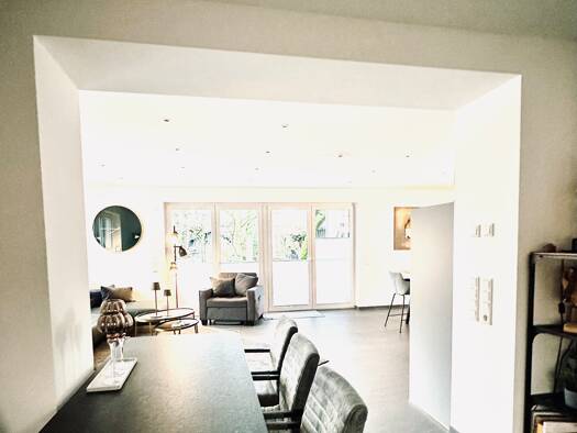 Voll möblierte Erdgeschosswohnung mit großzügigen 154 m² Wohnfläche in zentraler Innenstadtlage von Ochtrup. Die Wohnung besticht durch ein durchdachtes Raumkonzept mit zwei Schlafzimmern, einem modernen Badezimmer sowie einem Gäste-WC. Das große Wohn- und Esszimmer lädt zum Verweilen ein und wird durch ein gemütliches Kaminzimmer ergänzt, das für wohlige Wärme sorgt. Eine moderne Einbauküche bietet höchsten Komfort und ist vollständig ausgestattet. Der angrenzende, weitläufige Garten mit Garte...