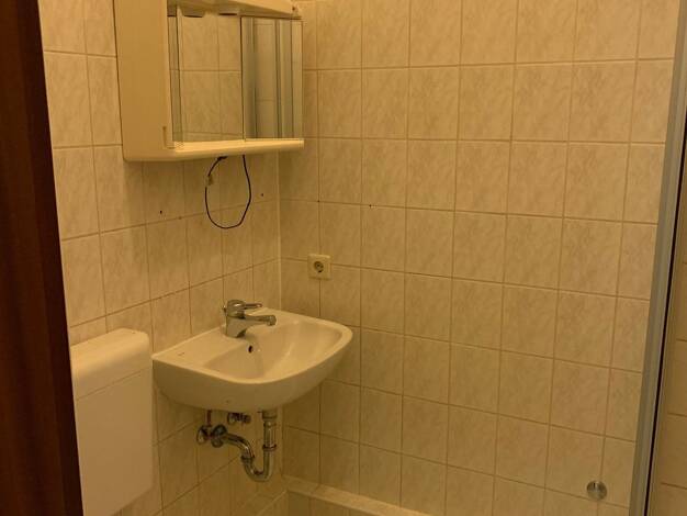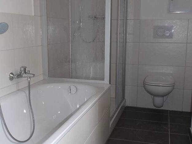 Gepflegte 3 Raumwohnung im Erdgeschoss wird ab dem 01.07.2026 neu vermietet. Das moderne gestaltete Tageslichtbad verfügt über eine Wanne sowie Dusche.