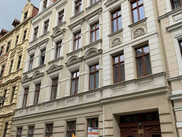 In einem geschichtsträchtigen und städtebaulich bedeutenden Mietshaus erwartet Sie eine Erdgeschosswohnung mit einer Wohnfläche von ca. 115,87 m². Das im Jahr 1890 errichtete Gebäude beeindruckt mit einer Historismusfassade sowie einer hochwertig erhaltenen und originalen Hausausstattung. Stuckdekore mit ausgearbeiteten Profilrahmen, Masken, Friesen und Blendbrüstungen im Eingangsbereich zeugen von der handwerklichen Qualität vergangener Zeiten und ziehen sich als gestalterisches Element auch i...