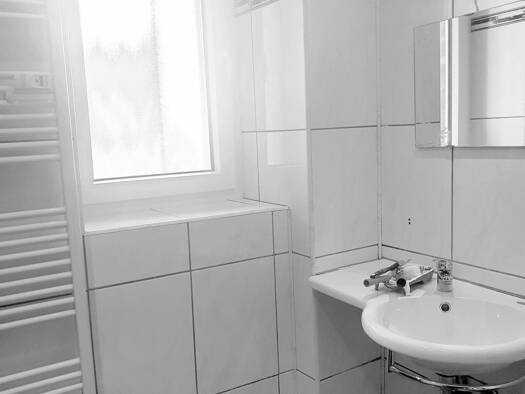 Objektbeschreibung Bei diesem Objekt handelt es sich um eine Wohnung in einem MFH/Altbau mit 8 Wohneinheiten. Im Keller des Hauses steht eine Gemeinschaft-Waschküche mit einer Waschmaschine und einem Trockner, die vom Vermieter der Gemeinschaft zur Verfügung gestellt werden (eine eigene Waschmaschine kann dort nicht untergebracht werden, auch innerhalb der Wohnung ist dies nicht möglich) . Raumaufteilung Es handelt sich um eine Wohnung in Hochparterre mit 3 Zimmern, Wohnküche mit Einbauküche, B...