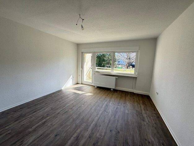 Die Wohnung befindet sich im Erdgeschoss des Mehrfamilienhauses mit direktem Zugang zur Wohnung. Alle Räume sind vom Flur zu erreichen und es gibt einen Abstellraum. Zur Wohnung gehört eine Terrasse. Das Bad ist gefliest und mit Wanne, WC und Waschmaschinen-Anschluss ausgestattet. Alle Räume sind mit Laminat ausgelegt.