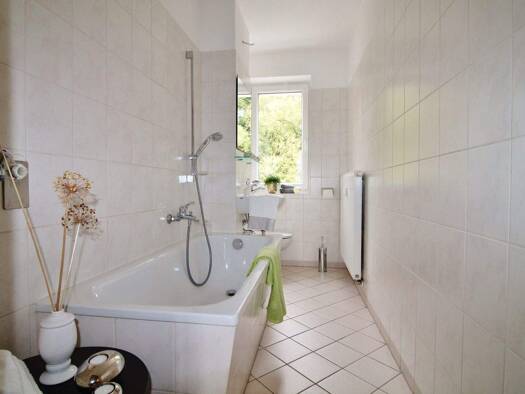 Diese Stadtvilla ist sehr ruhig und sonnig in der 2. Reihe gelegen. Diese ist von beiden Seiten durch einen hübsch angelegten Garten (Rasenfläche) begrenzt, welcher als Garten mit genutzt werden kann...
